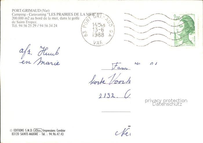 12243015 carte postale Port Grimaud Camping Les Prairies de la Mer postalisch gelaufen Erhaltung siehe scans KatCode: 11170083183068