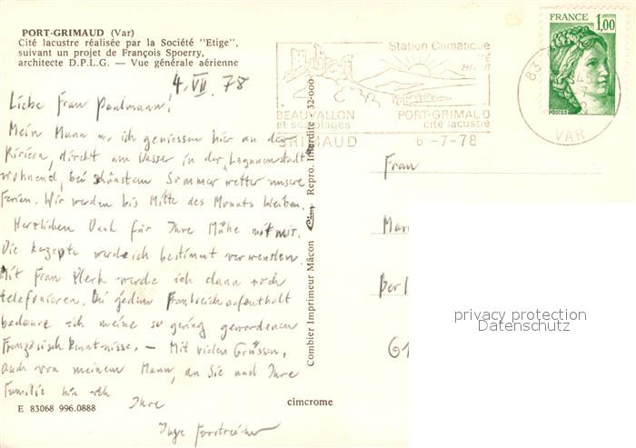 13355660 carte postale Port Grimaud Cite lacustre realisee par Societe Etige Vue generale aerienne postalisch gelaufen Erhaltung siehe scans [WerneD78] KatCode: 11170083183068