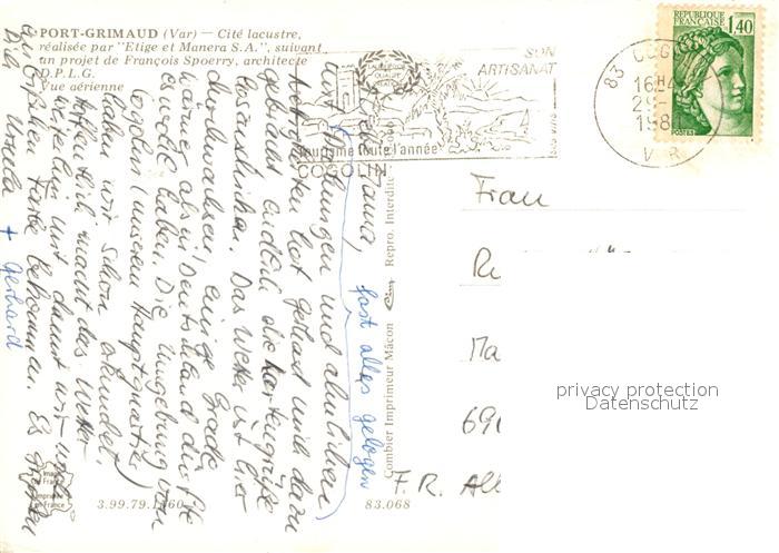 13493089 carte postale Port Grimaud Cite lacustre Vue aerienne postalisch gelaufen Erhaltung siehe scans [WerneD78] KatCode: 11170083183068