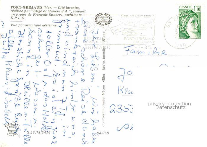 12860848 carte postale Port Grimaud Fliegeraufnahme Hafen postalisch gelaufen Erhaltung siehe scans [LiesaD40] KatCode: 11170083183068