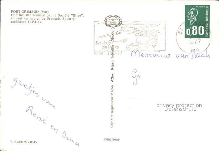 12483709 carte postale Port Grimaud Kanal Bruecke postalisch gelaufen Erhaltung siehe scans KatCode: 11170083183068