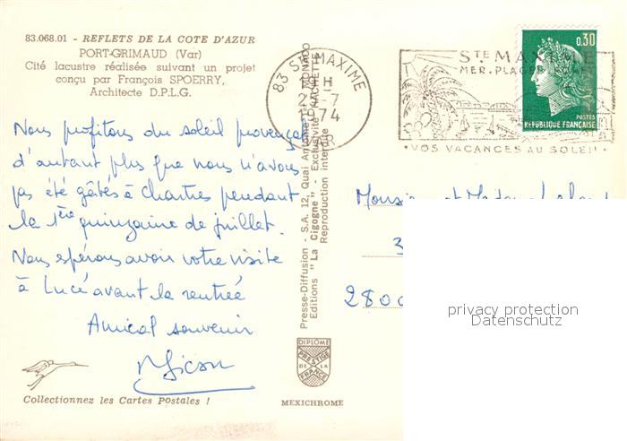 12926755 carte postale Port Grimaud Port Collection Reflets de la Cote d Azur postalisch gelaufen Erhaltung siehe scans [FriedD77] KatCode: 11170083183068