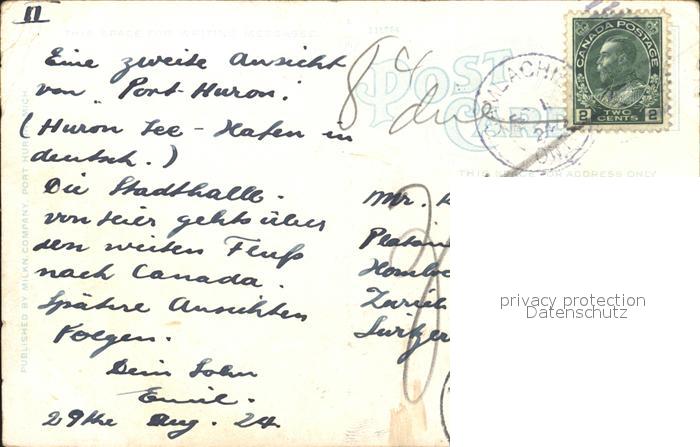 12020840 old postcard Port Huron City Hall Huron Avenue Broad Street Flag postalisch gelaufen Erhaltung siehe scans KatCode: 14140240000000