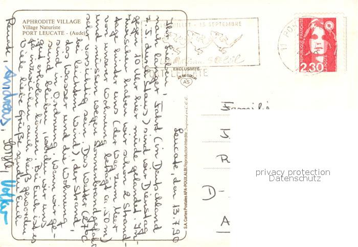 13319122 carte postale Port Leucate Aphrodite Village vue aérienne postalisch gelaufen Erhaltung siehe scans [FriedD77] KatCode: 11170011311202