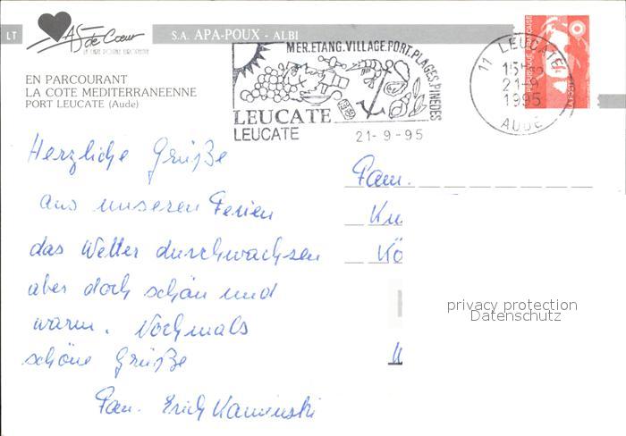 12253731 carte postale Port Leucate Le Port Bateau Hafen Segelboot postalisch gelaufen Erhaltung siehe scans KatCode: 11170011311202