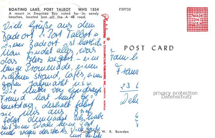 74153699 Port Talbot Wales UK Boating Lake Swansea Bay postalisch nicht gelaufen Erhaltung siehe scans [WerneD78] KatCode: 11570UKL1L17NZ