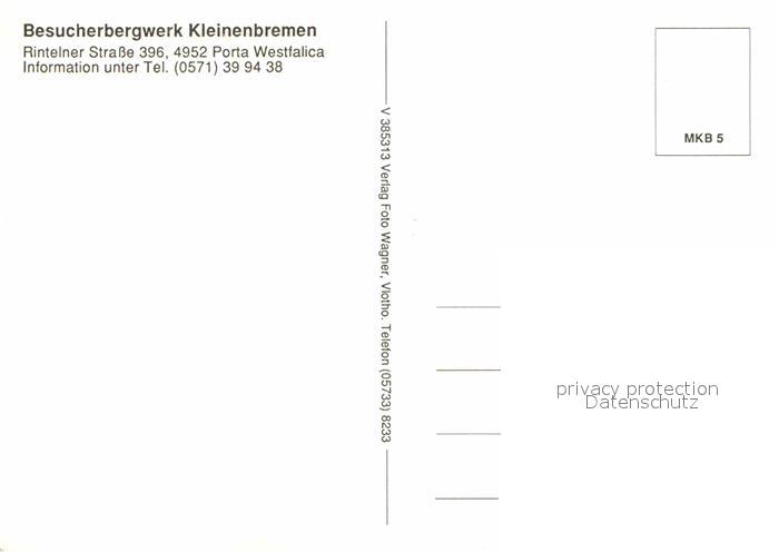 72928898 Porta Westfalica Besucherbergwerk Kleinenbremen postalisch nicht gelaufen Erhaltung siehe scans [FriedD77] KatCode: 11110005770032