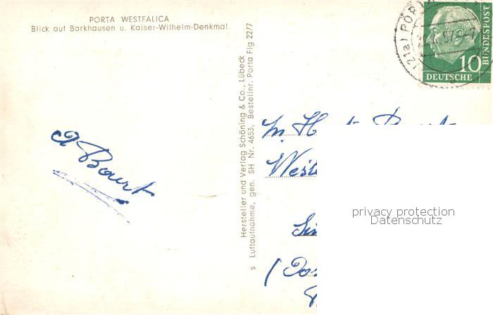73831686 alte Postkarte Porta Westfalica Blick auf Barkhausen und Kaiser Wilhelm Denkmal Fliegeraufnahme postalisch gelaufen Erhaltung siehe scans [WerneD78] KatCode: 11110005770032