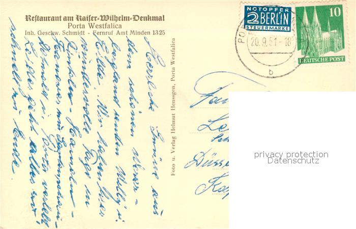 73279376 alte Postkarte Porta Westfalica Fliegeraufnahme Denkmal Kaiser Wilhelm postalisch gelaufen Erhaltung siehe scans [LiesaD40] KatCode: 11110005770032