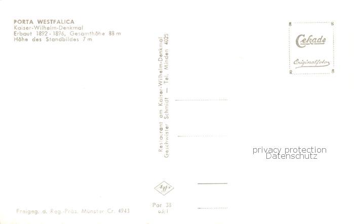 73828842 Porta Westfalica Fliegeraufnahme mit Kaiser Wilhelm Denkmal postalisch nicht gelaufen Erhaltung siehe scans [FriedD77] KatCode: 11110005770032