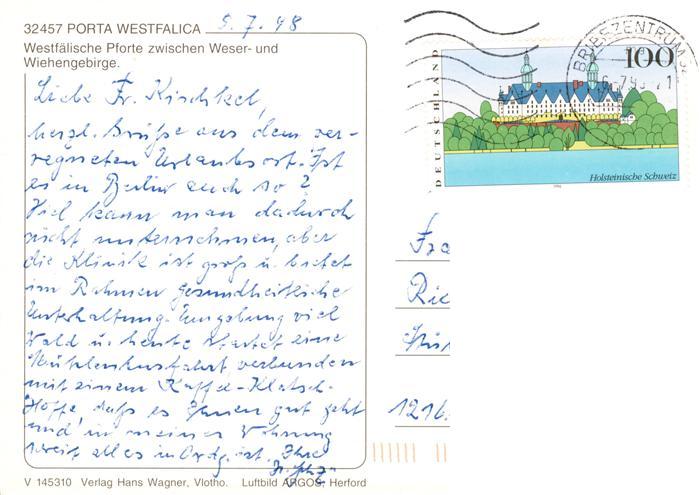 73880571 alte Postkarte Porta Westfalica Fliegeraufnahme postalisch gelaufen Erhaltung siehe scans [WerneD78] KatCode: 11110005770032