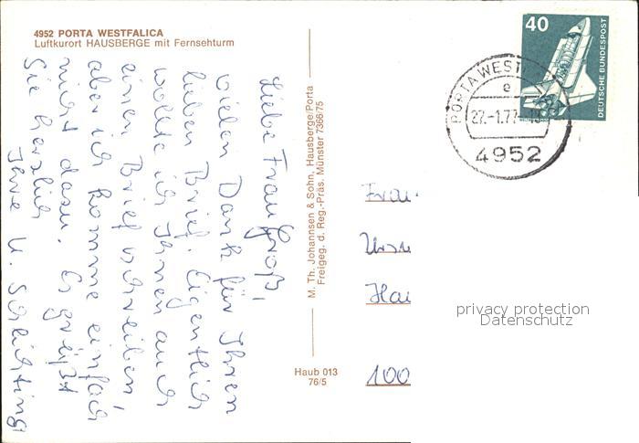 72580390 alte Postkarte Porta Westfalica Hausberge FernsLuftaufnahmeehturm postalisch gelaufen Erhaltung siehe scans [KathaD79] KatCode: 11110005770032