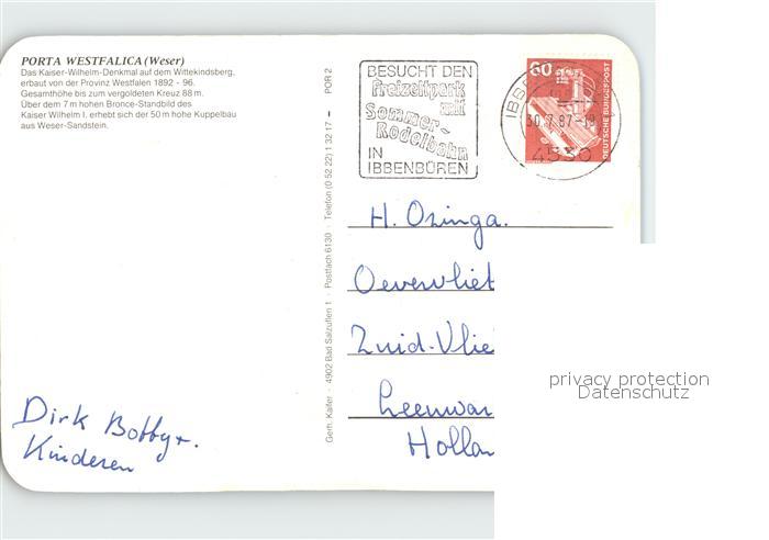 72330272 alte Postkarte Porta Westfalica Kaiser Wilhelm Denkmal postalisch gelaufen Erhaltung siehe scans KatCode: 11110005770032