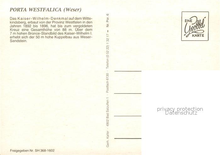 73634612 Porta Westfalica Kaiser Wilhelm Denkmal auf dem Wittekindsberg postalisch nicht gelaufen Erhaltung siehe scans [FriedD77] KatCode: 11110005770032