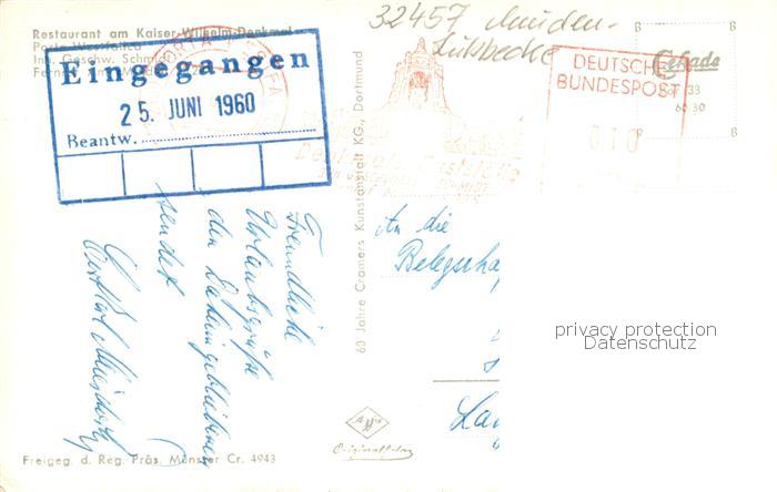 73767125 alte Postkarte Porta Westfalica Kaiser Wilhelm Denkmal Fliegeraufnahme postalisch gelaufen Erhaltung siehe scans [FriedD77] KatCode: 11110005770032