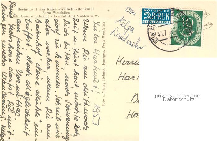 73779616 alte Postkarte Porta Westfalica Kaiser Wilhelm Denkmal Weserlauf Original Fliegeraufnahme postalisch gelaufen Erhaltung siehe scans [FriedD77] KatCode: 11110005770032