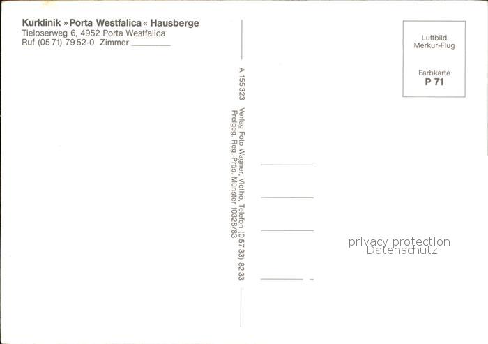 72535293 Porta Westfalica Kurklinik Fliegeraufnahme Hausberge postalisch nicht gelaufen Erhaltung siehe scans [LiesaD40 kt120box] KatCode: 11110005770032