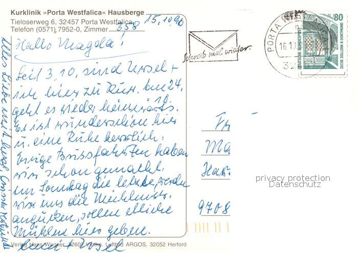 73304563 alte Postkarte Porta Westfalica Kurklinik Hallenbad Gymnastikraum Patientenzimmer Speisesaal Fliegeraufnahme postalisch gelaufen Erhaltung siehe scans [FriedD77] KatCode: 11110005770032