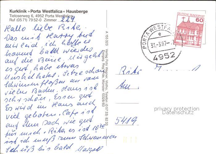 71984445 alte Postkarte Porta Westfalica Kurklinik Porta Westfalica Hausberge postalisch gelaufen Erhaltung siehe scans KatCode: 11110005770032