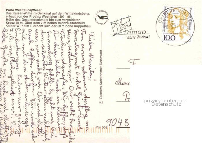 72886723 alte Postkarte Porta Westfalica mit Kaiser Wilhelm Denkmal Wittekindsberg postalisch gelaufen Erhaltung siehe scans [WerneD78] KatCode: 11110005770032