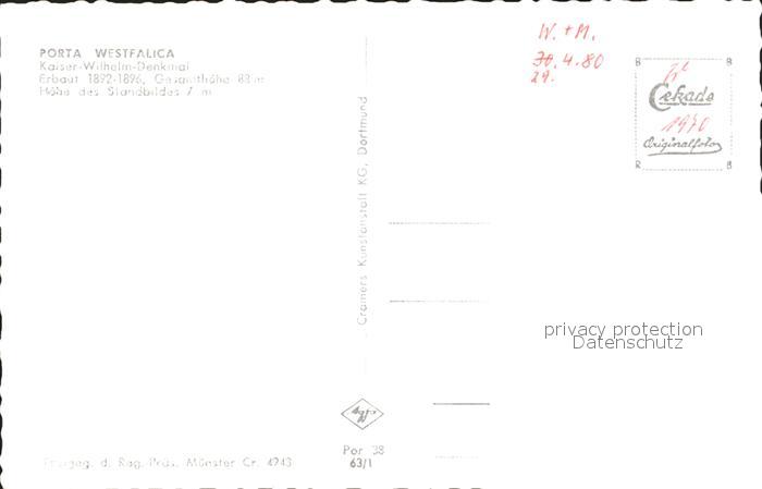 72197987 Porta Westfalica Panorama Kaiser Wilhelm Denkmal Fliegeraufnahme postalisch nicht gelaufen Erhaltung siehe scans KatCode: 11110005770032