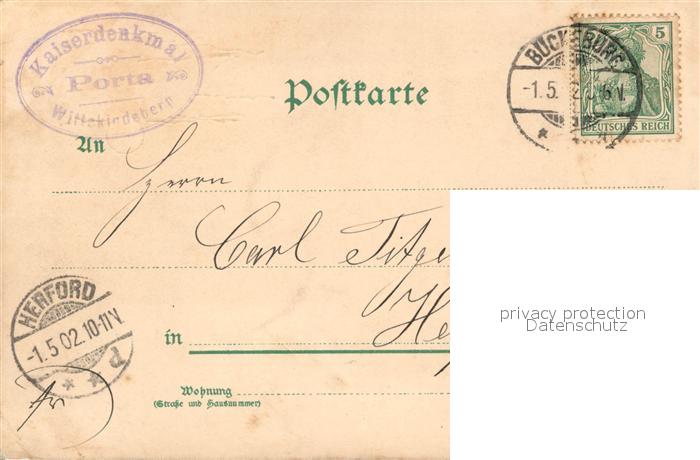 43252591 alte Postkarte Porta Westfalica Panorama Kaiser Wilhelm Denkmal Kuenstlerkarte postalisch gelaufen Erhaltung siehe scans [FriedD77] KatCode: 11110005770032