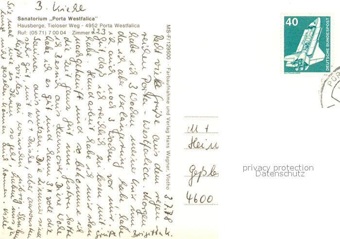 73722257 alte Postkarte Porta Westfalica Sanatorium Porta Westfalica Aussenansicht postalisch gelaufen Erhaltung siehe scans [LiesaD40] KatCode: 11110005770032