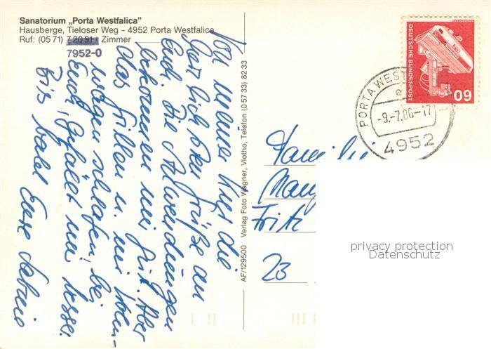 73758778 alte Postkarte Porta Westfalica Sanatorium Porta Westfalica Aussenansicht postalisch gelaufen Erhaltung siehe scans [LiesaD40] KatCode: 11110005770032