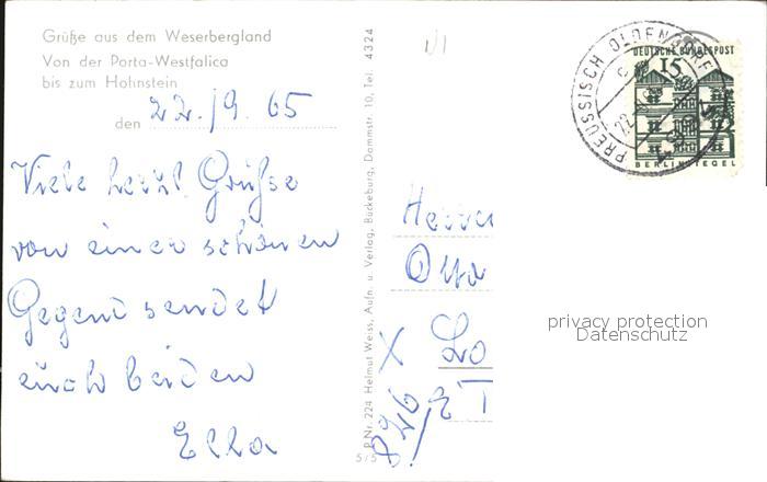 72424340 alte Postkarte Porta Westfalica Weserbergland bis zum Hohnstein postalisch gelaufen Erhaltung siehe scans KatCode: 11110005770032