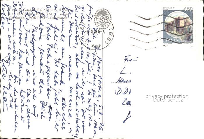 old postcard Portese Porto Hafen Gardasee postalisch gelaufen Erhaltung siehe scans