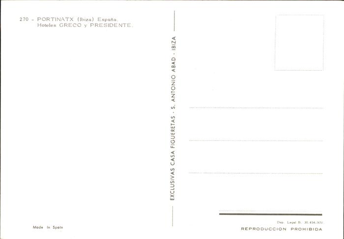 Portinatx Hoteles Greco y Presidente Playa Strand postalisch nicht gelaufen Erhaltung siehe scans