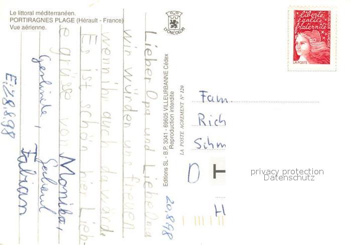 13243002 carte postale Portiragnes Fliegeraufnahme Strand postalisch gelaufen Erhaltung siehe scans [KathaD81] KatCode: 11170034134209