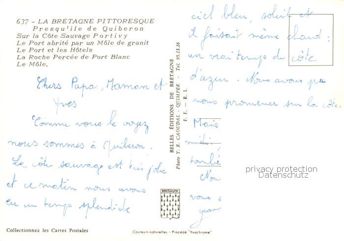 13790602 Portivy Presqu Ile de Quiberon 35 Le Port abrite par un Mole de granit Le Port et les Hotels La Roche Percee de Port Blanc Le Mole postalisch nicht gelaufen Erhaltung siehe scans [WerneD78] Wern Katcode 11170035335238