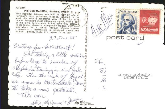 72240277 old postcard Portland Oregon Pittock Mansion postalisch gelaufen Erhaltung siehe scans KatCode: 14140400000000