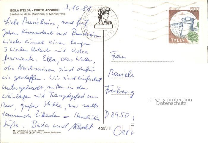old postcard Porto Azzurro Isola D`Elba Santuario della Madonna die Monserrato postalisch gelaufen Erhaltung siehe scans