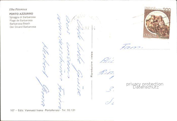 old postcard Porto Azzurro Spiaggia di Barbarossa Bucht Strand postalisch gelaufen Erhaltung siehe scans