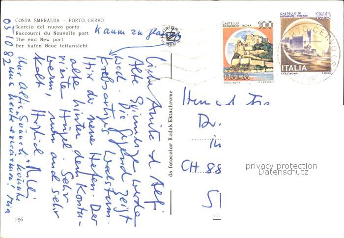 old postcard Porto Cervo Hafen postalisch gelaufen Erhaltung siehe scans