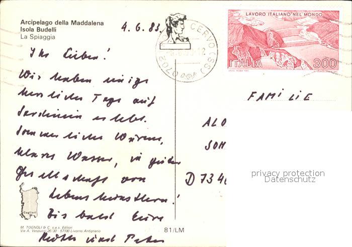 old postcard Porto Cervo Isola Budelli Strand postalisch gelaufen Erhaltung siehe scans