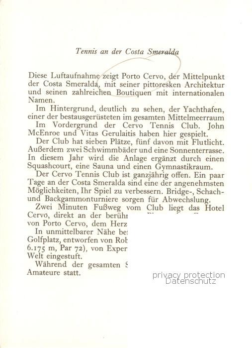 Porto-Cervo Sardegna Costa Smeralda IT Fliegeraufnahme mit Tennisanlage postalisch nicht gelaufen Erhaltung siehe scans [WerneD78]