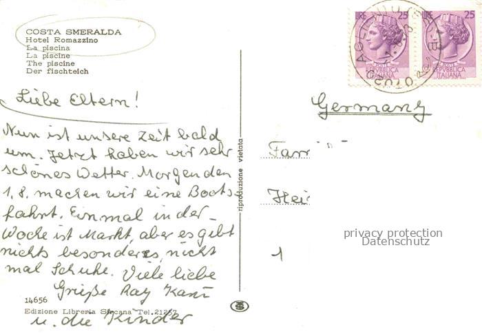 74040438 old postcard Porto-Cervo Sardegna Costa Smeralda IT Hotel Remazzino Swimming Pool postalisch gelaufen Erhaltung siehe scans [FriedD77] KatCode: 11240000000000