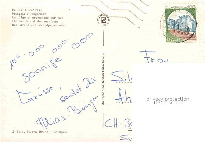 old postcard Porto Cesareo Spiaggia e lungomare Strand Promenade postalisch gelaufen Erhaltung siehe scans [FriedD77]
