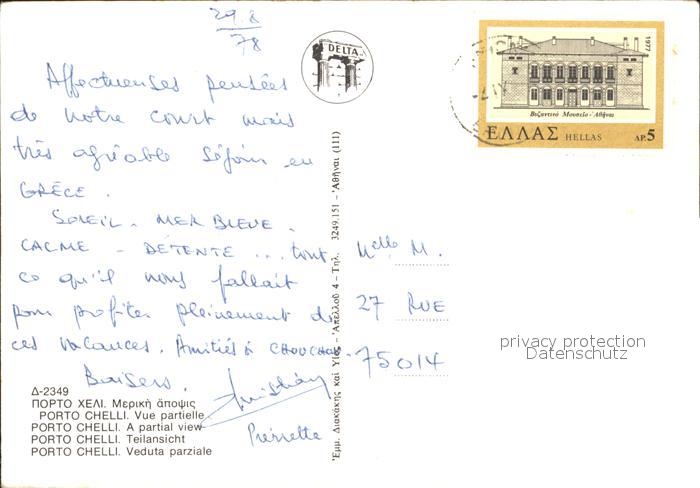 old postcard Porto Cheli Porto Heli Hafenpartie Teilansicht postalisch gelaufen Erhaltung siehe scans