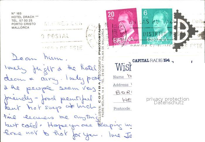 old postcard Porto Christo Hotel Drach postalisch gelaufen Erhaltung siehe scans