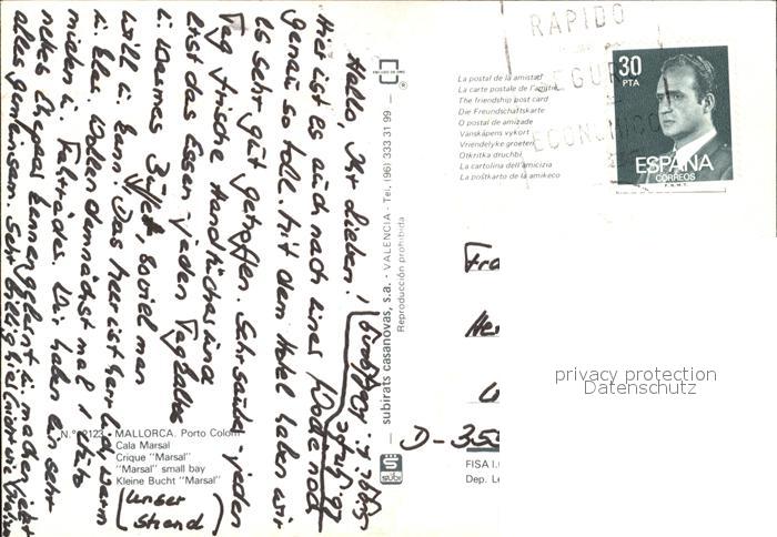 old postcard Porto Colom Cala Marsal Kleine Bucht Strand Hotel postalisch gelaufen Erhaltung siehe scans