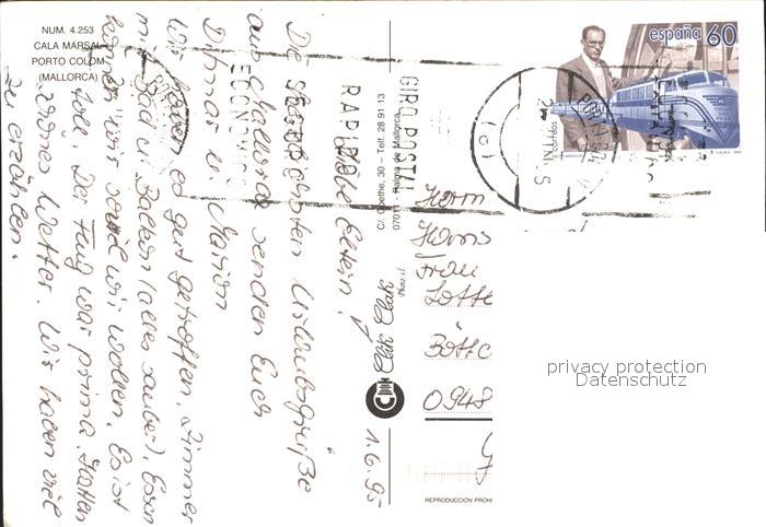 old postcard Porto Colom Hotel Cala Marsal Strand postalisch gelaufen Erhaltung siehe scans