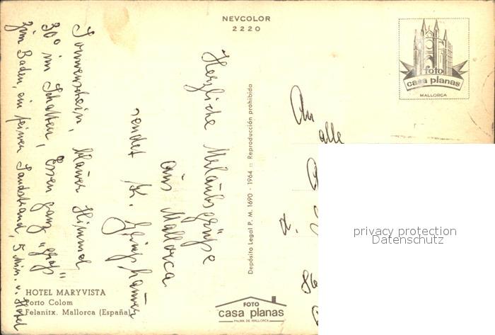 old postcard Porto Colom Hotel Maryvista postalisch gelaufen Erhaltung siehe scans