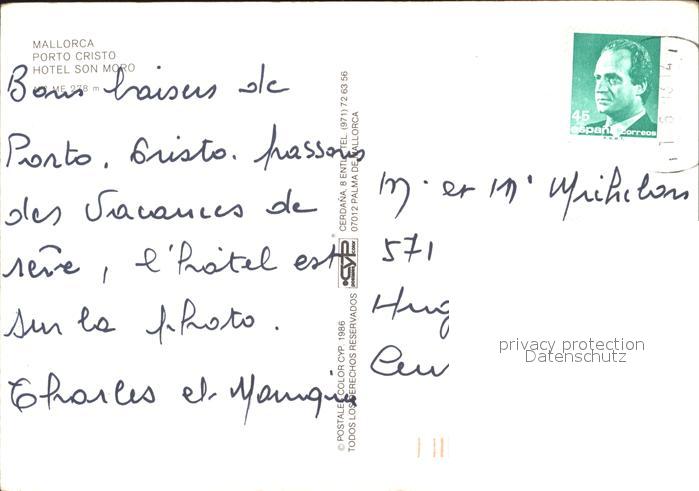 old postcard Porto Cristo Hotel Son Moro Strandpartien postalisch gelaufen Erhaltung siehe scans