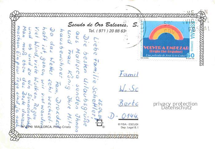 74029442 old postcard Porto-Cristo Mallorca ES Kuestenpanorama Hafen postalisch gelaufen Fliegeraufnahme Erhaltung siehe scans [FriedD77] KatCode: 11510