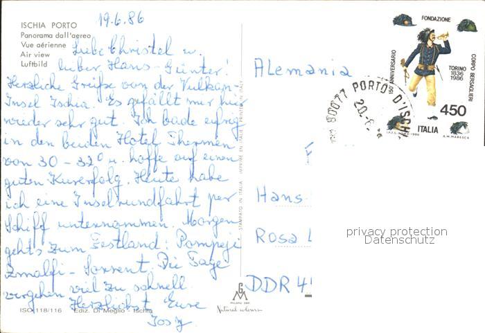 old postcard Porto d Ischia Fliegeraufnahme postalisch gelaufen Erhaltung siehe scans