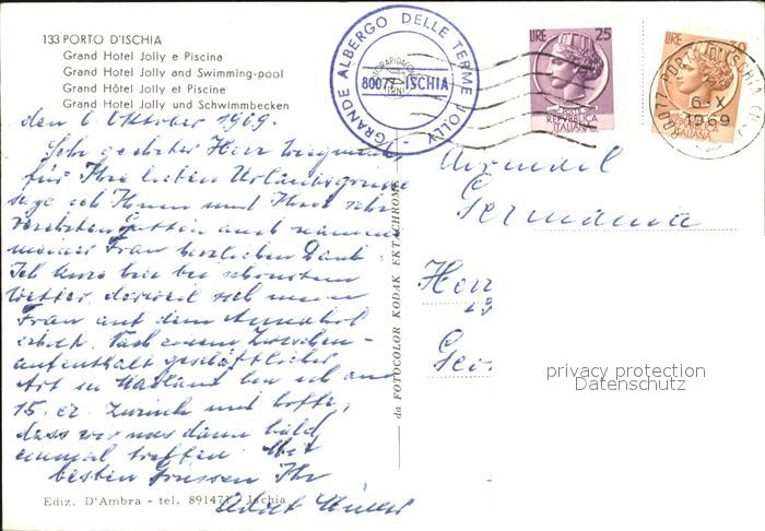 old postcard Porto d Ischia Grand Hotel Jolly e Piscina Swimming Pool postalisch gelaufen Erhaltung siehe scans